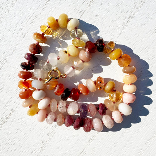 19 inch Autumn Sunset Gemstone Beaded Necklace