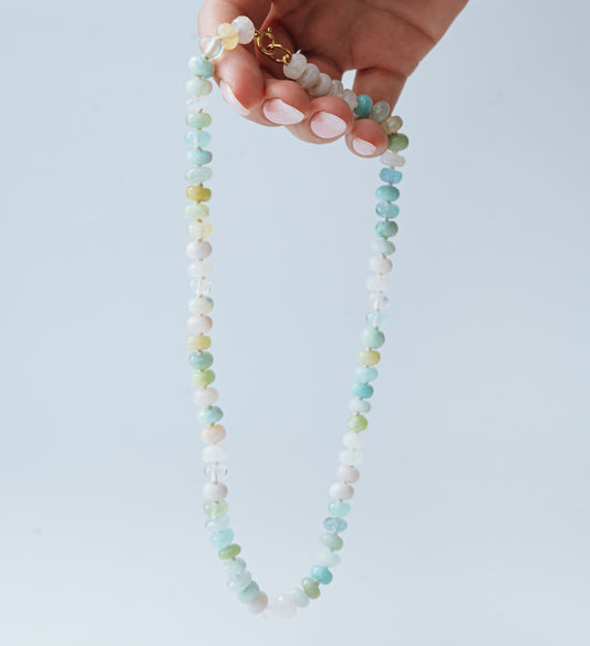 19 inch Caribbean Lake Gemstone Beaded Necklace