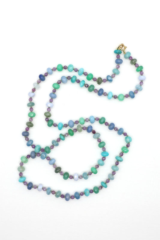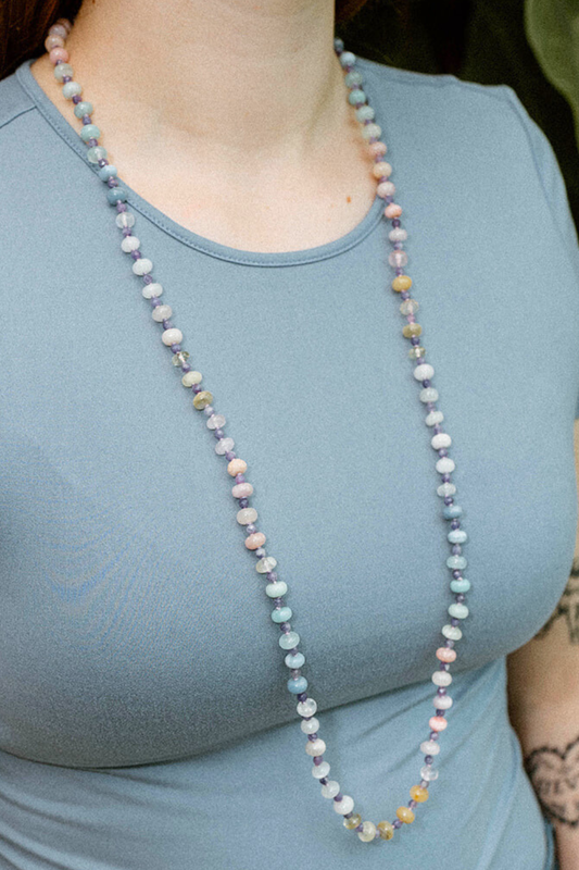 Radiant Horizons is a collection of one-of-a-kind gemstone beaded inspired by the shifting hues of the sky—from the soft glow of dawn to the vibrant energy of midday and the calm of twilight. Crafted in a harmonious mix of pinks, greens, whites, purples, tans, and blues, these necklaces move effortlessly from gentle pastels to rich, deeper tones. breathtaking interplay of light and color found in our atmosphere.