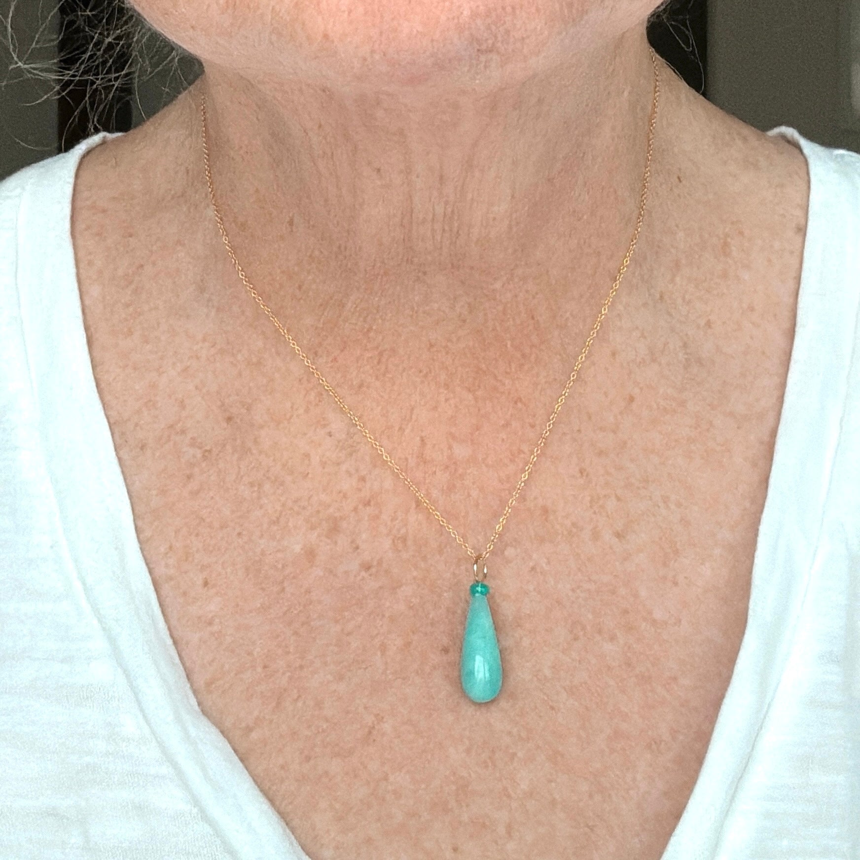 The charm gemstone measures 29 x 8mm and is topped with a 14K gold filled bail. Chain necklace not included.